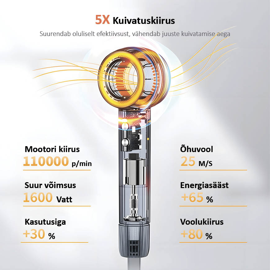 Komplektis olev koondaja suunab õhuvoolu täpseks stiliseerimiseks ja juurte töötlemiseks.