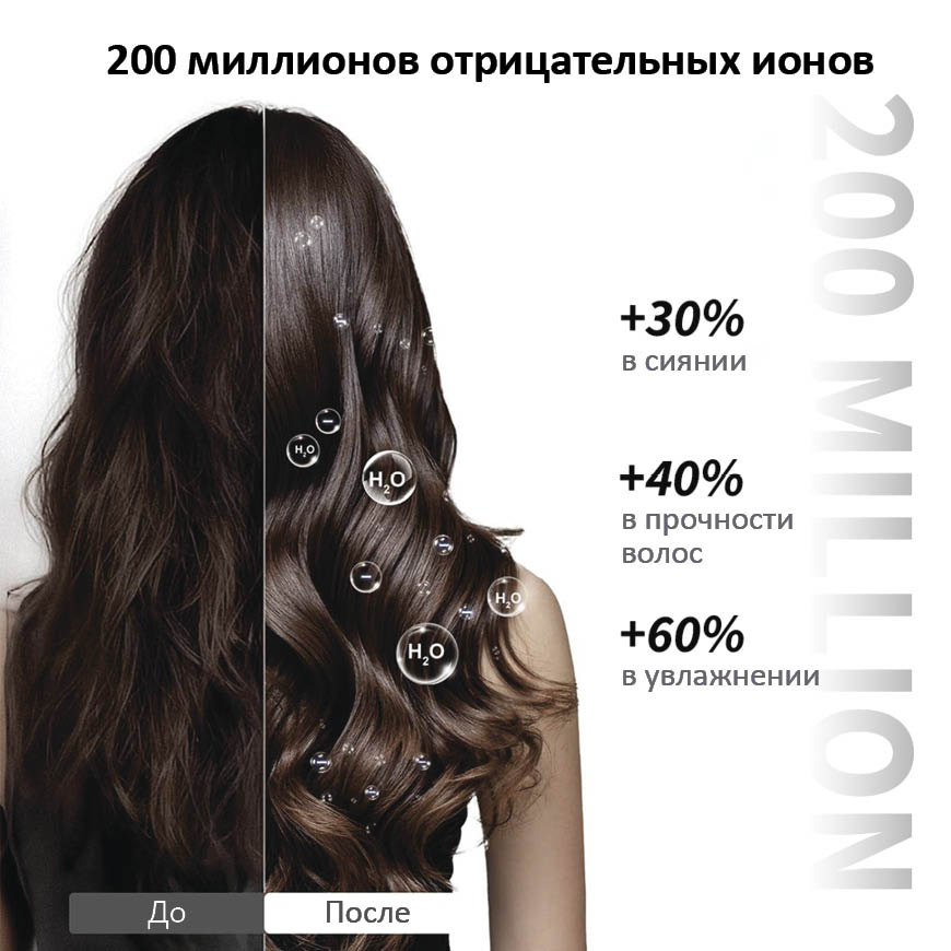 Негативные ионы — уменьшение статического эффекта, меньше пушения, более гладкие и блестящие волосы.