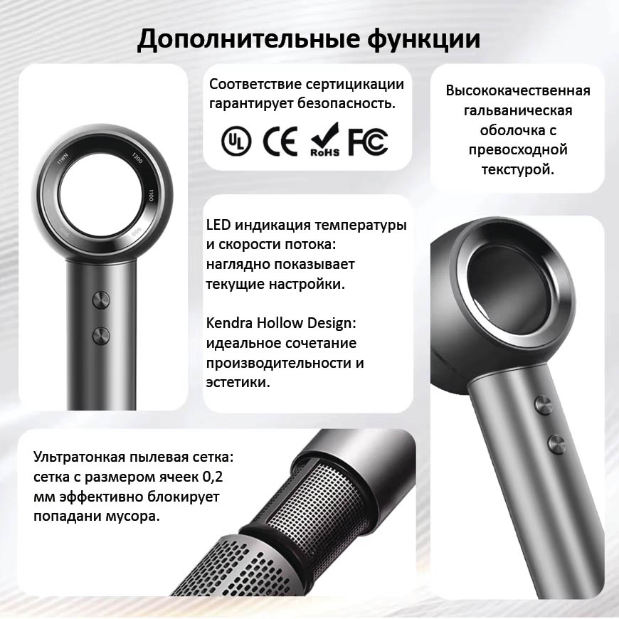 Настенное магнитное крепление — удобное и стильное хранение, фен всегда под рукой.
